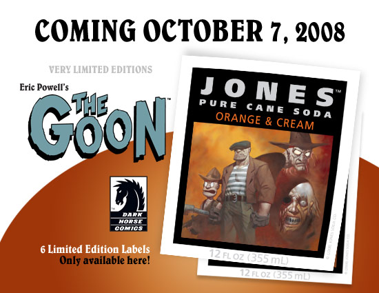 As part of this program, fans of comics and soda alike will be able to purchase collectible-themed bottles featuring some of their favorite Dark Horse characters and art. One hundred numbered and limited six-pack bottles will be available just in time for Halloween on October 7th. The program will launch with Eric Powell's The Goon, and the iconic thirteen-year-old Emily the Strange, and will only be available at www.myjones.com. The Goon will be available on October 7 and Emily the Strange limited-edition bottles will arrive on October 14th.
