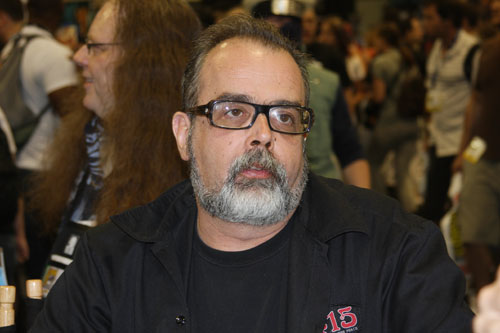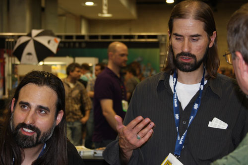 Stick 'em up! Mike Richardson, Weta's Richard Taylor (w/gun) and Gentle Giant's Karl Meyer