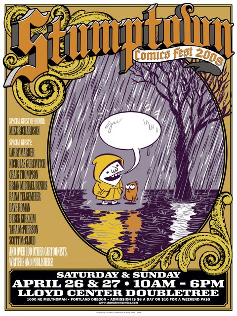 Every month MDHP features the professional debut of a creator whose work was found on MySpace.com. For the last three years Portland's Stumptown Comics Fest has been a great place for new creators to show off their work in one of the greatest comic book cities in the nation. If novice artists and writers think they have what it takes to join the ranks of Ezra Claytan Daniels, Brian Churilla, Katie Cook, Matt Brenier, Rebecca Sugar, Ilias Kyriazis, Jeff Wamester, and Jason Graham--all of whom made their paid, professional comics debut on MDHP--they are encouraged to show up with a stapled, 8 1/2 x 11 copy of their work and a print out of their MySpace homepage. A print-out of the candidates MySpace homepage is mandatory! Eligibility requires that the participant has examples of their work currently displayed on MySpace, and that they have never had comics released by a professional publisher or through Diamond Distribution, through a major comics website, or one that charges a fee. Ashcans and free, self-run websites do not disqualify, and ultimately eligibility is left to the discretion of the MySpace Dark Horse Presents editors. At the end of the weekend, Scott Allie will select two cartoonists to create original strips to appear on MDHP later this year, alongside the likes of Joss Whedon, Steve Niles, Mike Mignola, Tony Millionaire, and Stan Sakai. Scott will have a table at the show, but review of portfolios for MDHP will be limited to one block of time per day, in the Dark Horse booth--see below. Visit the Stumptown website (http://www.stumptowncomics.com) and the MySpace Dark Horse Presents (http://www.myspace.com/darkhorsepresents) page for more information.