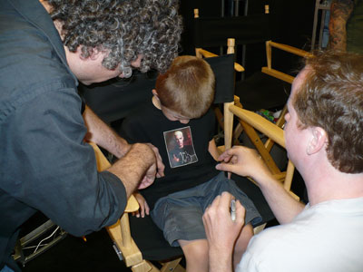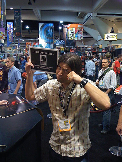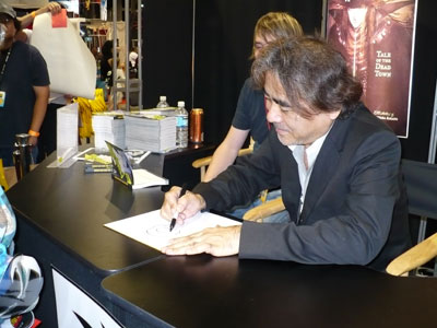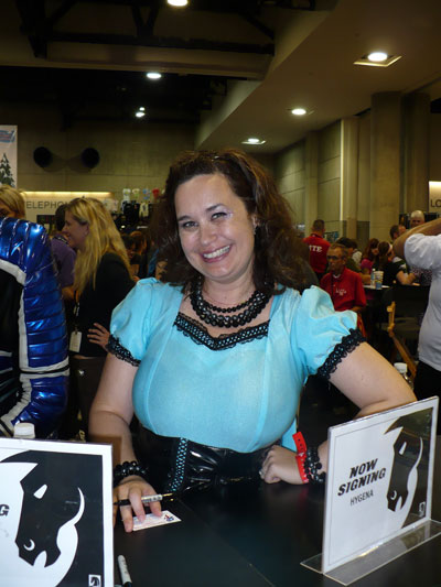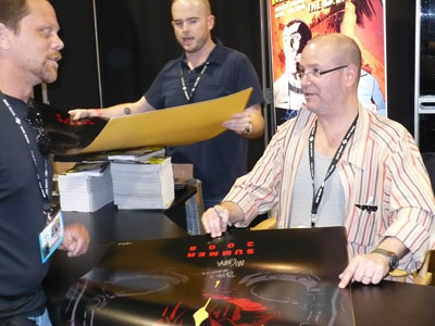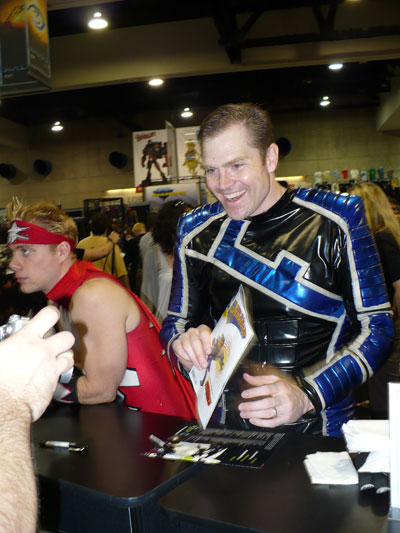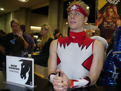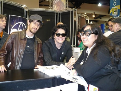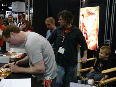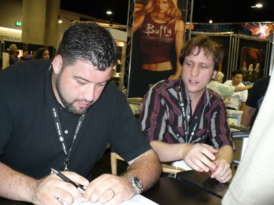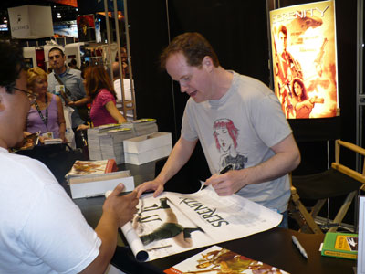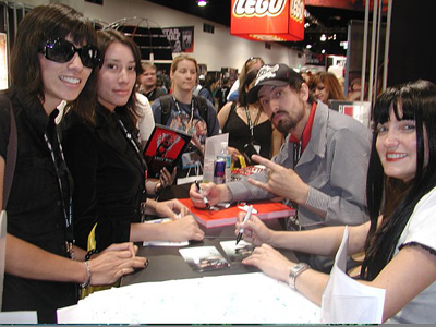 A huge fan of Buffy came by the booth (seated).
