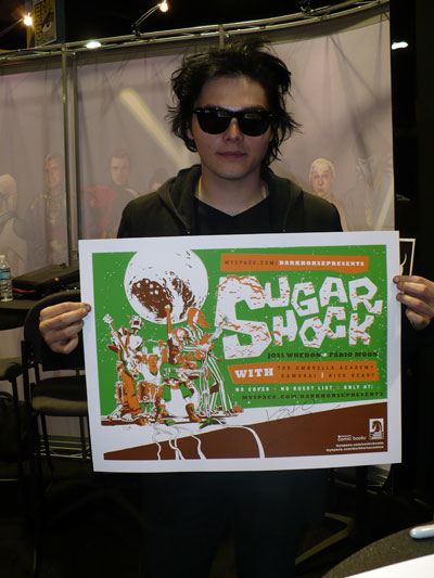 Gerard Way holding a MySpace Dark Horse Presents Sugar Shock limited edition lithograph.