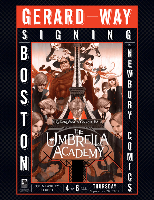 On Thursday, September 20th, Gerard will be signing at Newbury Comics (Newbury St. location) in Boston, Mass. from 4 - 6 pm.