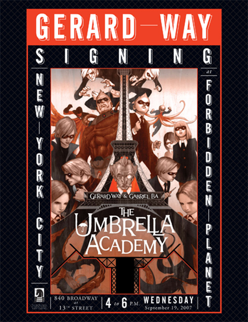 On Wednesday, September 19th, Gerard will be signing at Forbidden Planet (Grand Central location) in New York City