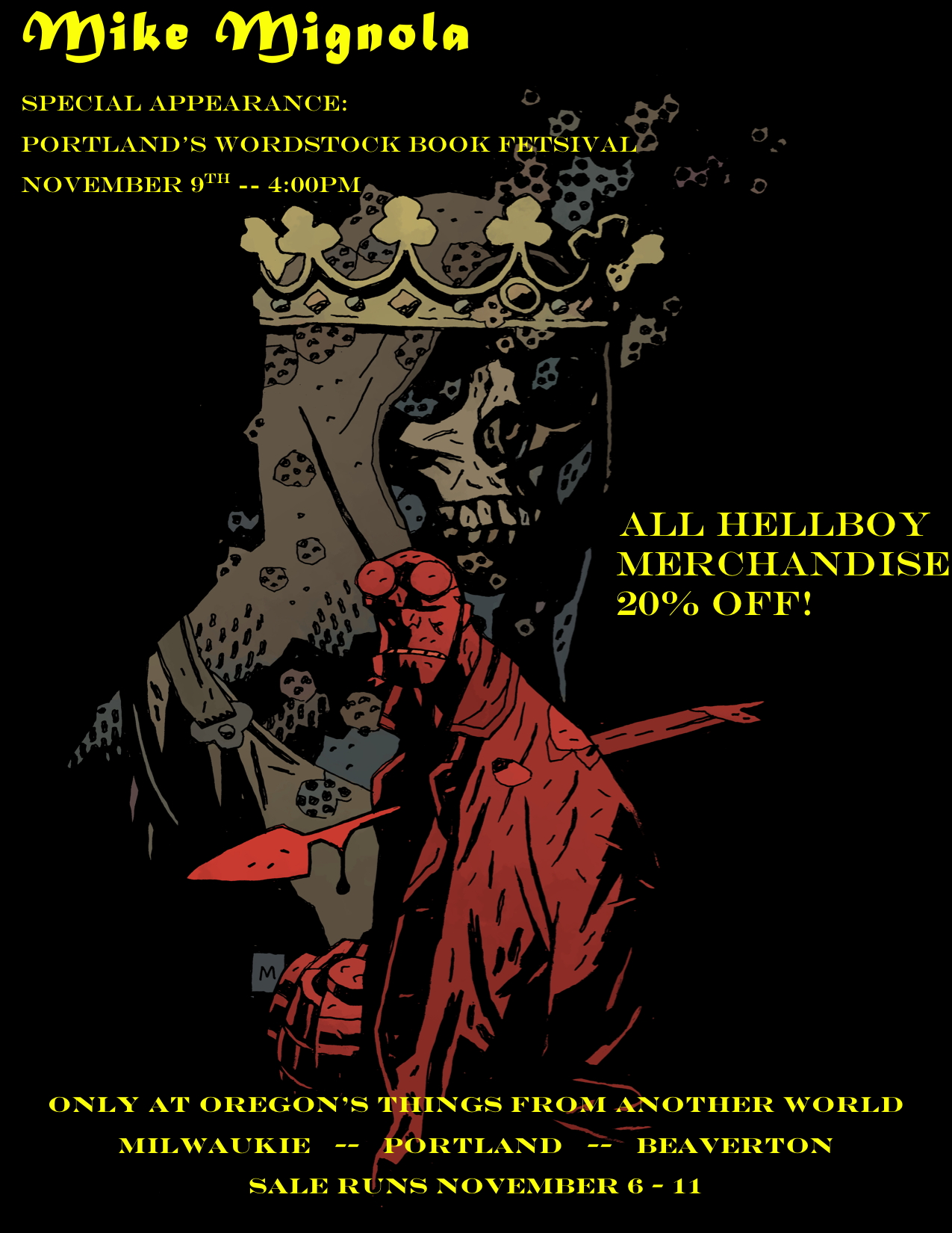 Sunday, November 9th at 4:00pm, Mike Mignola, the award-winning creator of