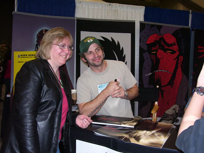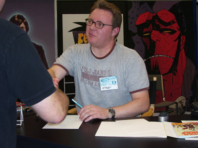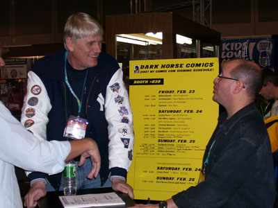DH Prez Mike Richardson, Mike Mignola, and Dirk Wood's hand