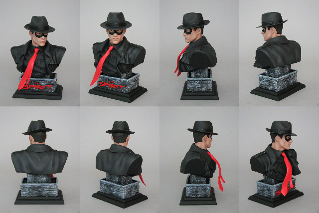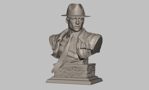 Oluf Hartvigson handled all aspects of The Spirit Mini-Bust himself--sculpting, coordinating the output, and molding. He has generously shared some of the preliminary work in progress, available exclusively to Pony Express readers. This piece really grabbed the likeness of movie star Gabriel Macht, and stands as an excellent example of how digital-sculpting tools can be used by a skilled artisan to create not only an accurate likeness, but also a sense of drama and animation, without having to rely on digital scans of the subject. Oluf and Kolby each did their pieces using reference no different from the photography a traditional sculptor would use.