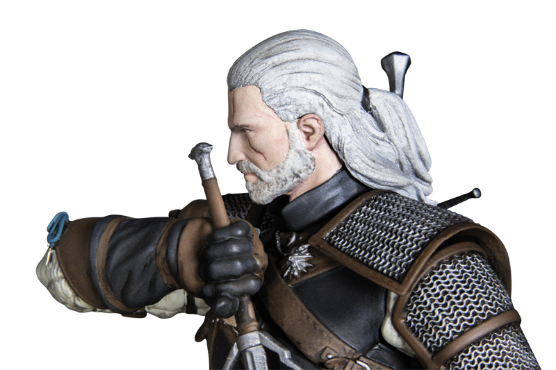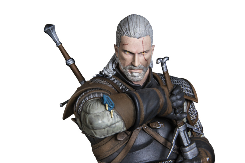 Geralt of Rivia, the monster-slaying protagonist. The figure stands 8” tall and includes a 1.5” base.