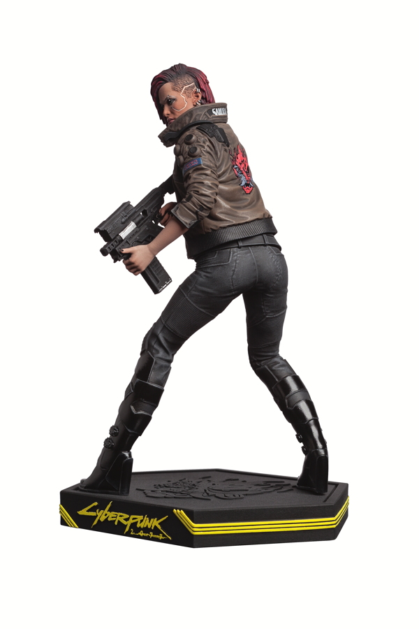 This figure showcases one of the potential looks of V, the fully-customizable player-controlled protagonist of Cyberpunk 2077. Our highly detailed version features the V that you as a player start with in the game in heeled boots, samurai jacket, and smart rifle ready for action.