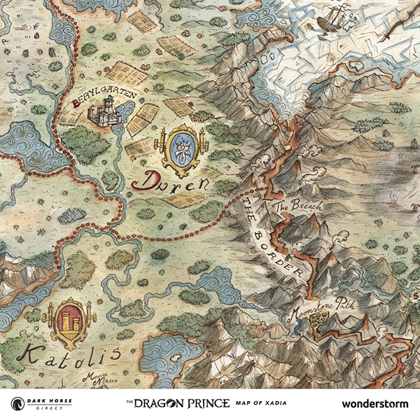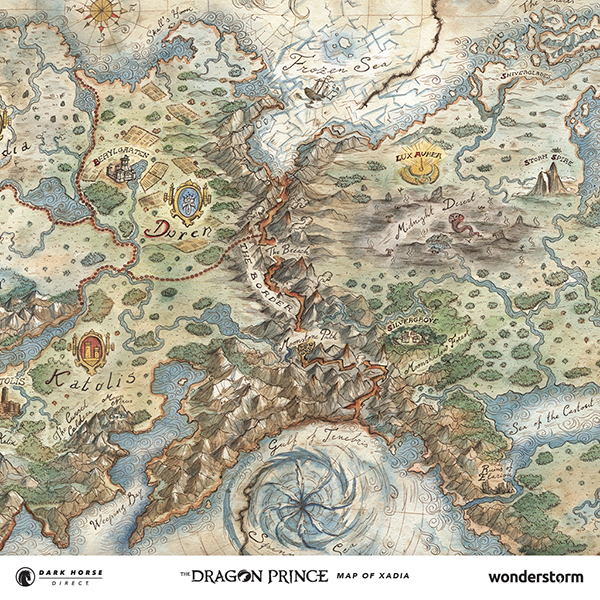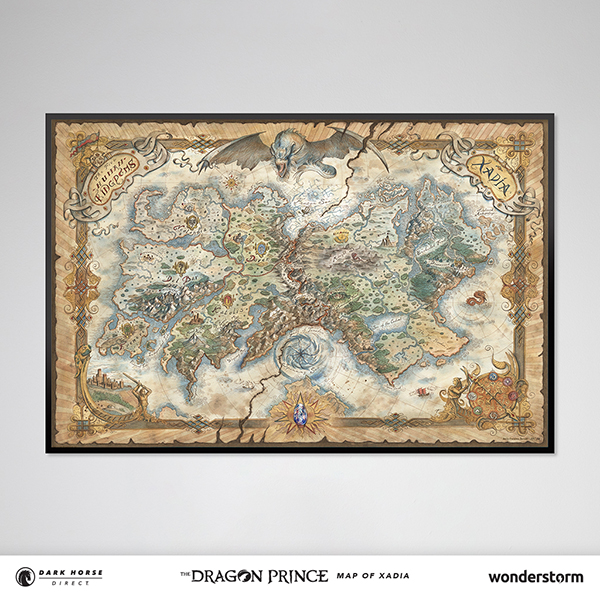 Dark Horse Direct and Wonderstorm are proud to present The Dragon Prince Map of Xadia as a limited-edition fine art lithograph print! From the five Human Kingdoms to the west, to the magical lands of Xadia to the east, explore the highly detailed world of this beloved series, painted by Francesca Baerald!