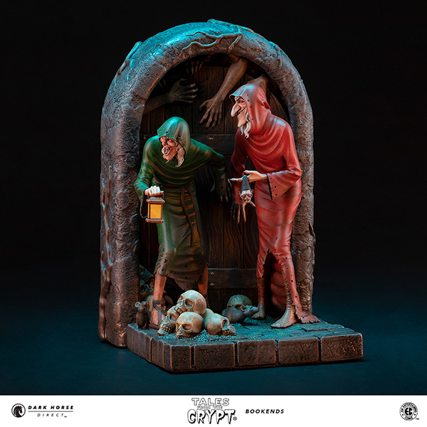 Relive your EC Comics nostalgia with Dark Horse Direct's exclusive new bookend set! One half has The Crypt-Keeper ready to tell you a new tale of terror and the other holds The Vault-Keeper and The Old Witch keeping the dead at bay. Expertly sculpted by Chris Dahlberg, with prototyping and paint by JW Productions, immerse yourself in the horrific stories you love with these immaculately crafted bookends!