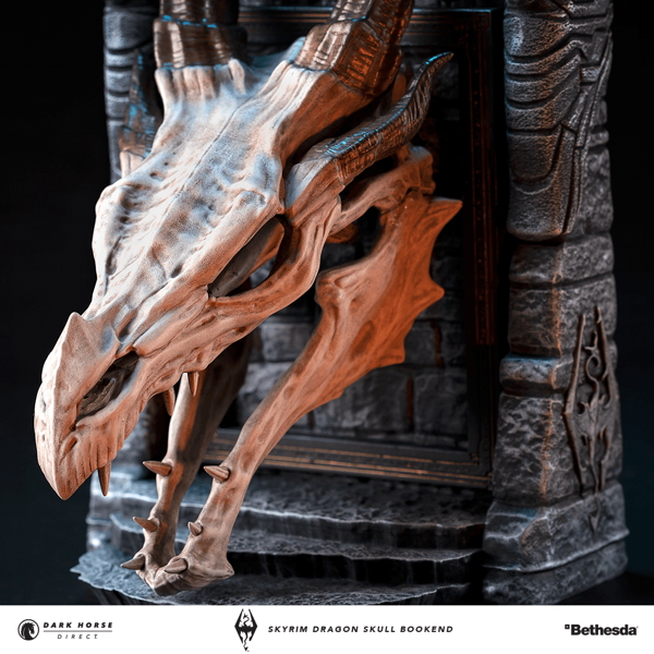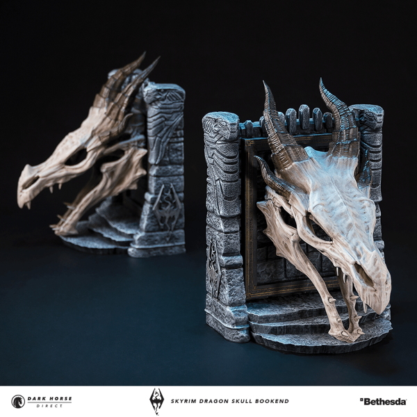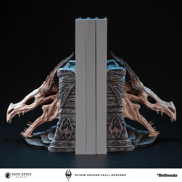 Dark Horse Direct and Bethesda have teamed up to present the first ever bookend, of the award winning game - The Elder Scrolls V: Skyrim! Celebrating the 10 year anniversary, this bookend will make you feel as though youve stumbled upon an ancient Skyrim relic.