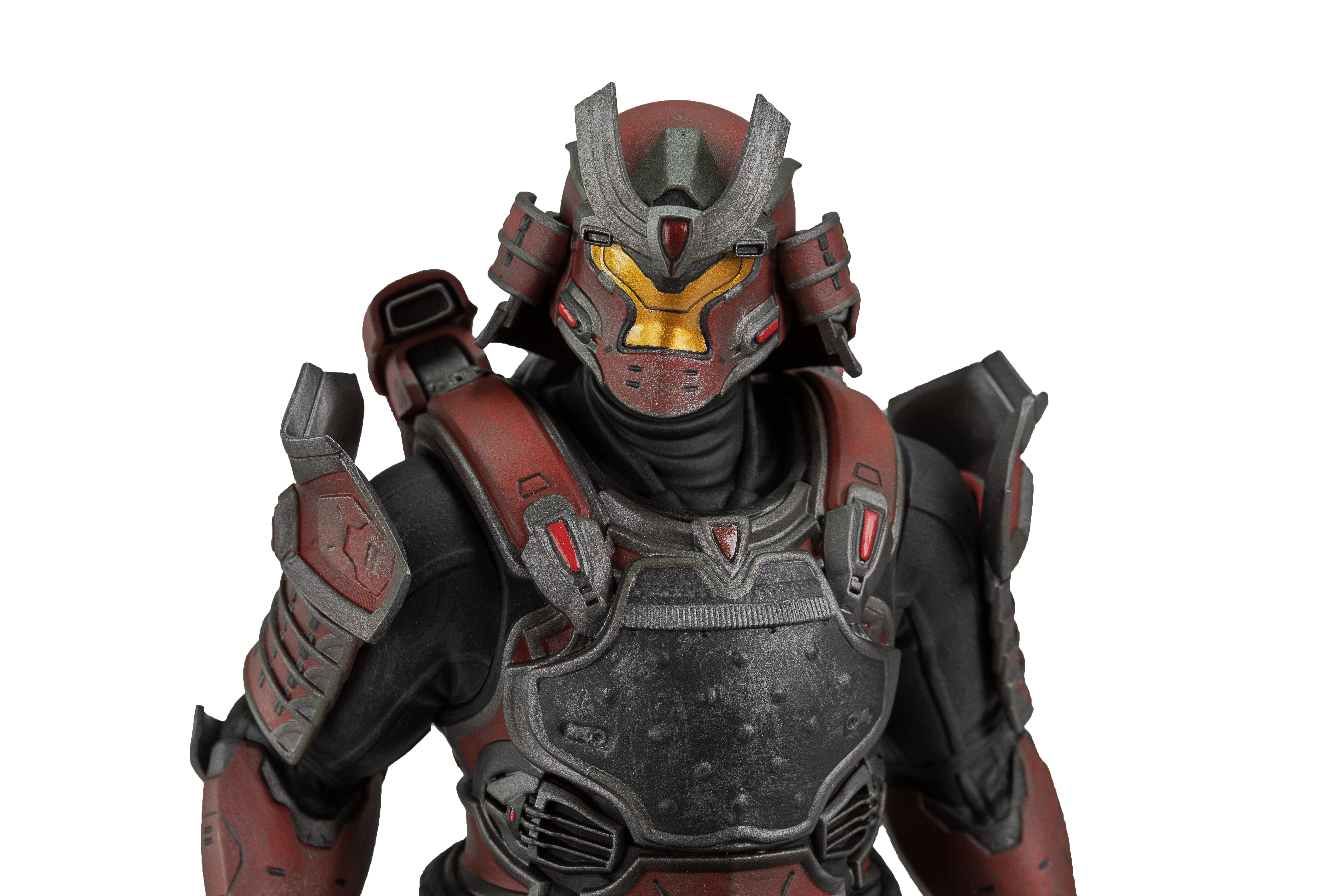 Featuring the Scarlett Empress coating, the traditional Kabuto helmet, Gatekeeper shoulder pads and the Shadow Raven knee pads, this statue is fit for battle. Exclusively available in the Halo Infinite multiplayer--Fracture: Tenrai event, now this legendary armor set can be yours to hold.
