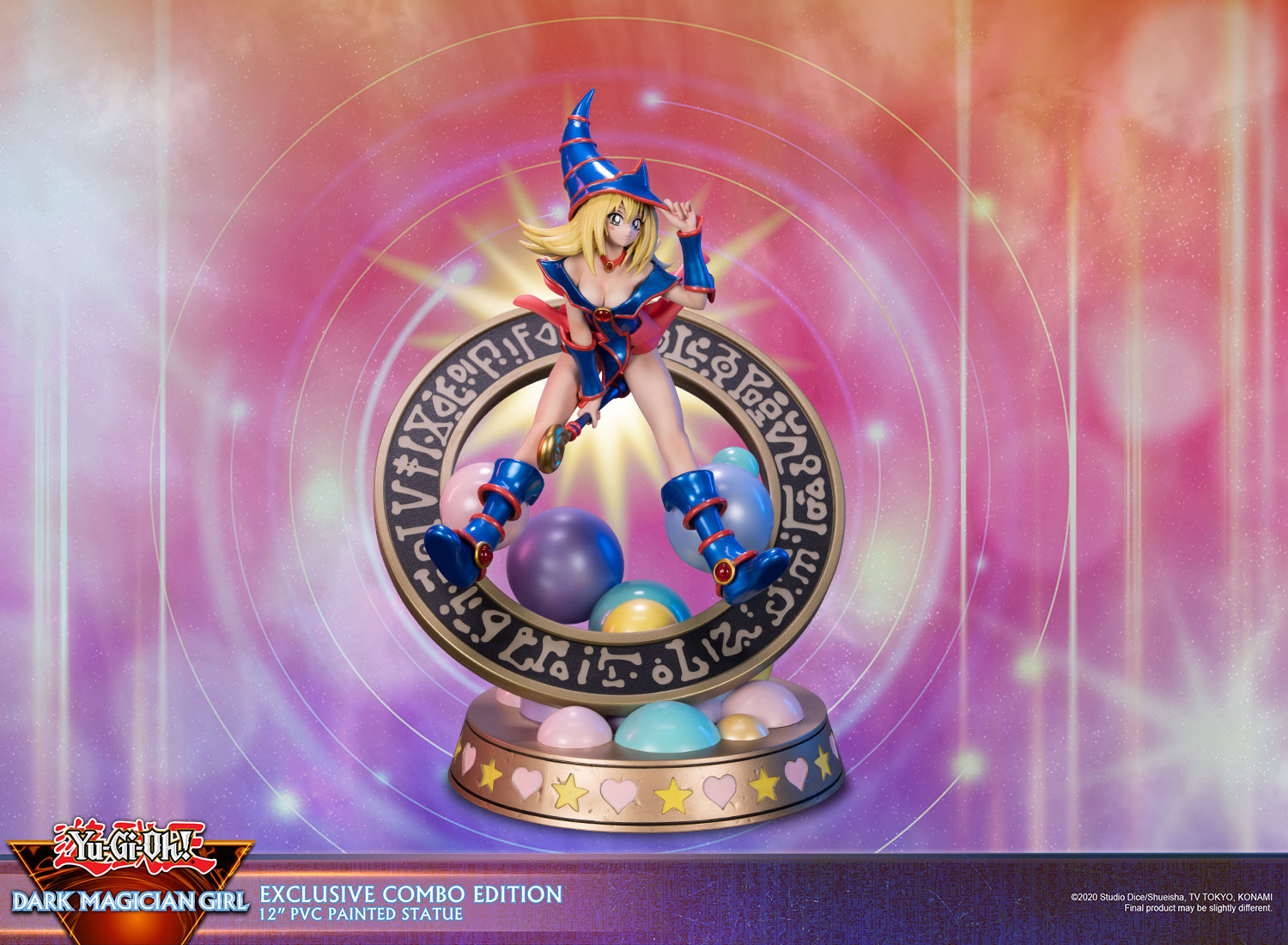 Dark Magician Girl is a six-star level spellcaster and her spells are not to be taken lightly. She has trained with the bestDark Magician. Dark Magician Girl helped Yugi defeat many foes from Battle City to the Duel Festival. For this statue, Dark Magician Girl is high up in the air and with her wand in front, ready to go into battle! Behind her is the Magicians Seal, and colorful magic orbs sprout from the base.