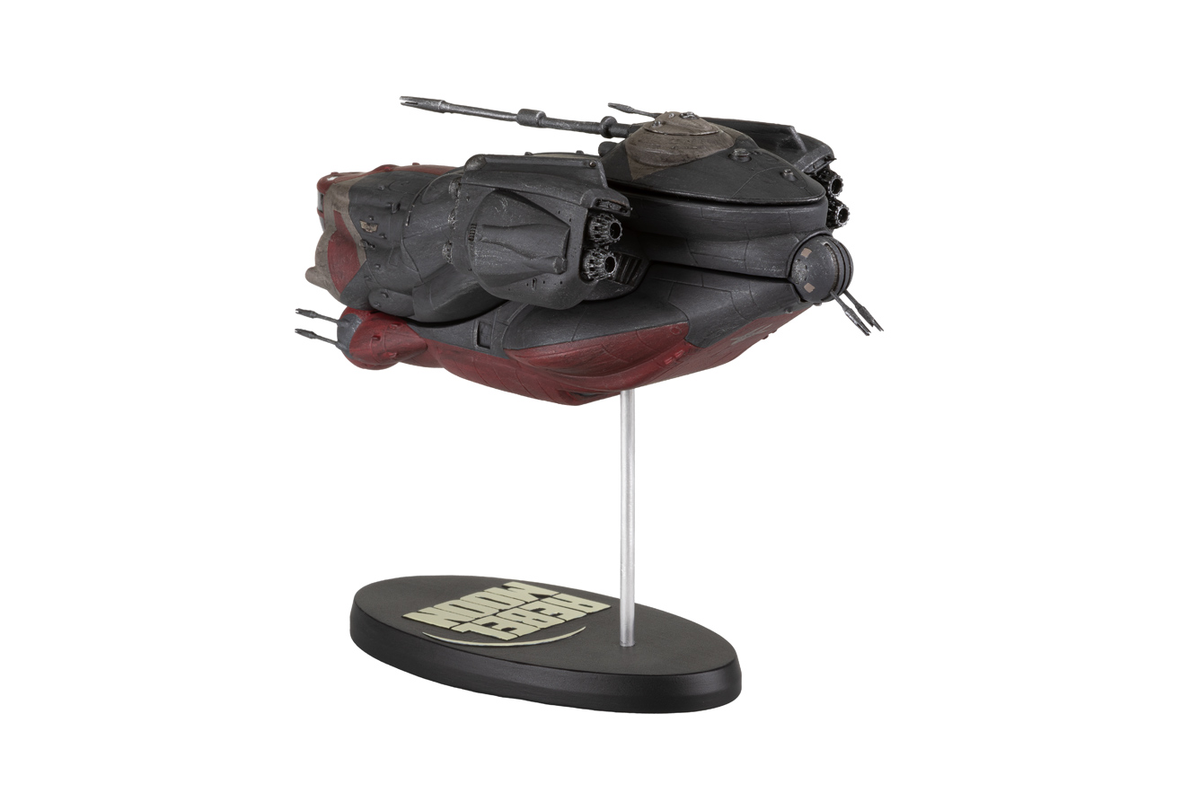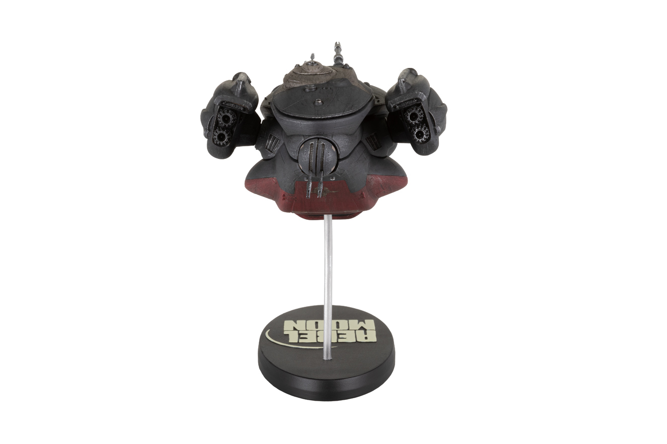 Dark Horse Comics, in partnership with Netflix, are proud to announce our first highly detailed ship replica of the Imperium Dropship for Zack Snyder’s science-fantasy epic, Rebel Moon. Emphasizing the extensive world-building elements of Rebel Moon, the massive scale of the universe is represented by the near-endless variety of ships that navigate the stars. The Imperium Dropship Replica is hand painted with exceptional quality and made out of poly resin with metallic parts. Held aloft with a metal rod upon a base emblazoned with the Rebel Moon logo, this ship replica measures approximately at 6.75” long,3.75” wide, and 4” tall.