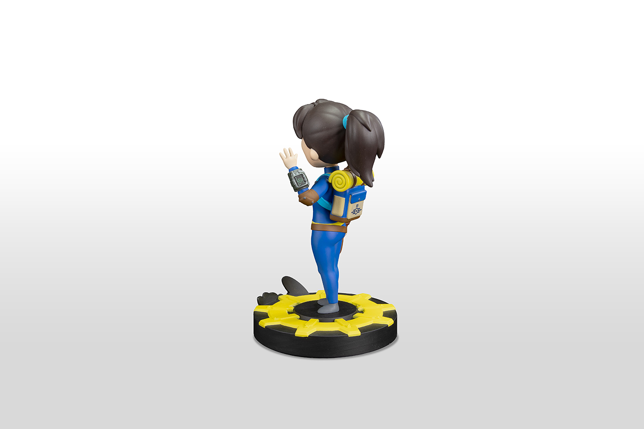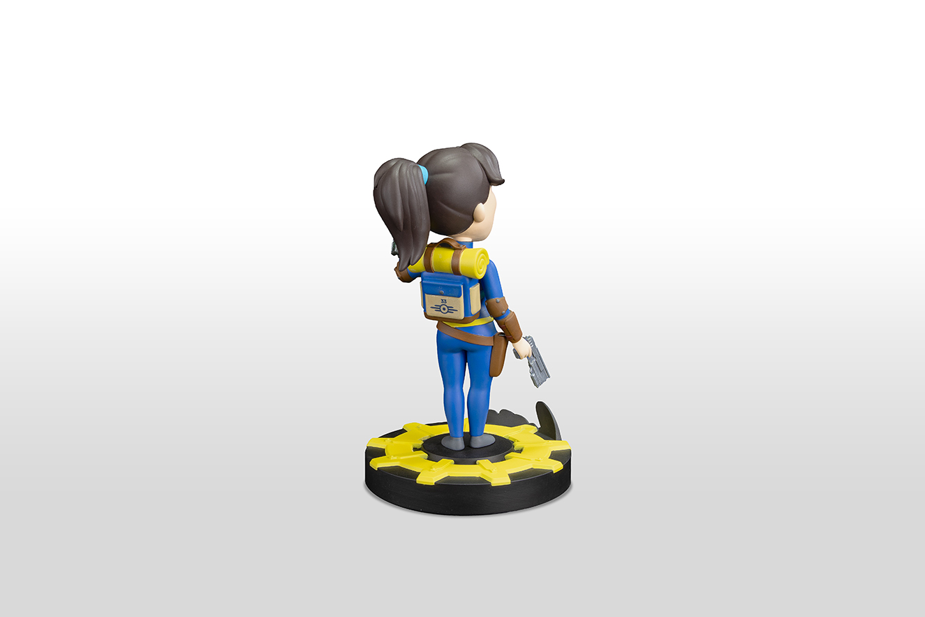 Standing on a circular base resembling a closed Vault-Tec door, Lucy is a reminder that even in a post-apocalyptic world filled with unknowns, irradiated cockroaches, and ravenous ghouls, a can-do attitude (and a Pip-Boy) can take you far!